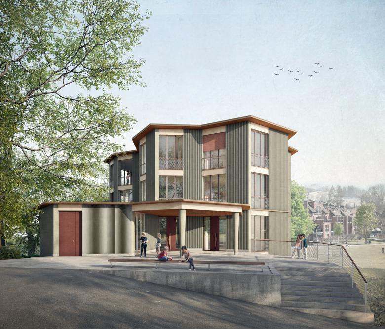 Ergänzung der im Inventar der schützenswerten Bauten eingetragenen Schulanlage Boppartshof der Architekten Förderer, Otto & Zwimpfer durch ein Haus für die Tagesbetreuung mit vier Horteinheiten und Küche.