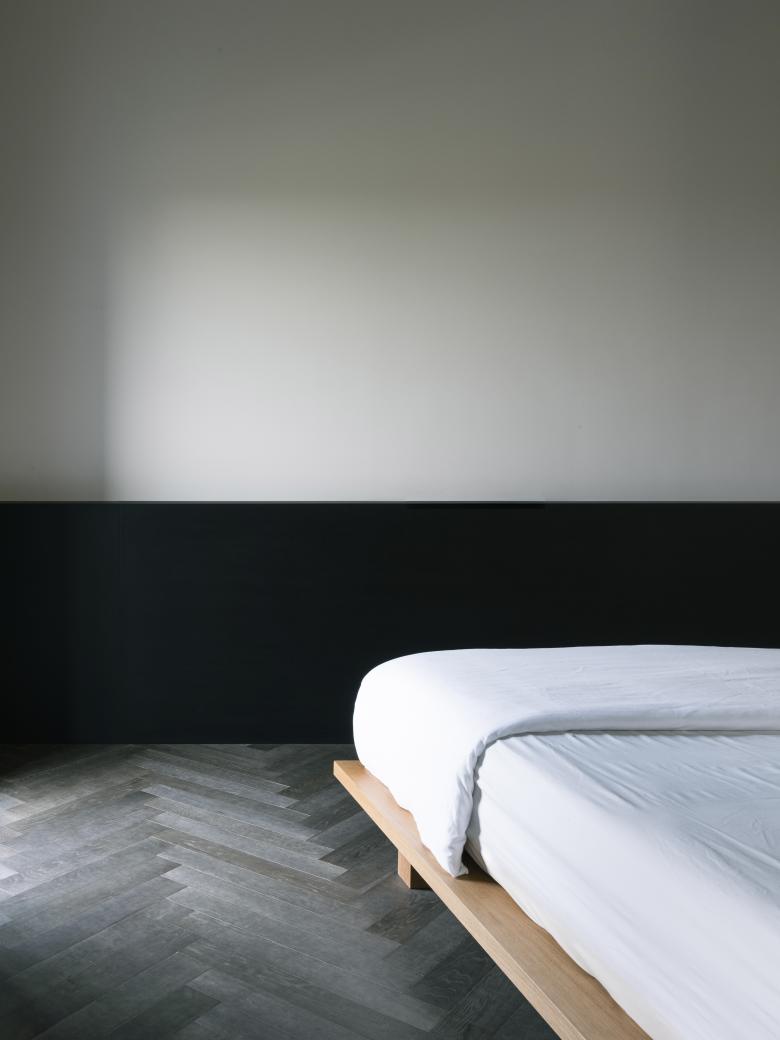 Al piano superiore una grande armadiatura si configura come parete contenitiva e come soglia d'accesso alle camere da letto e al bagno.