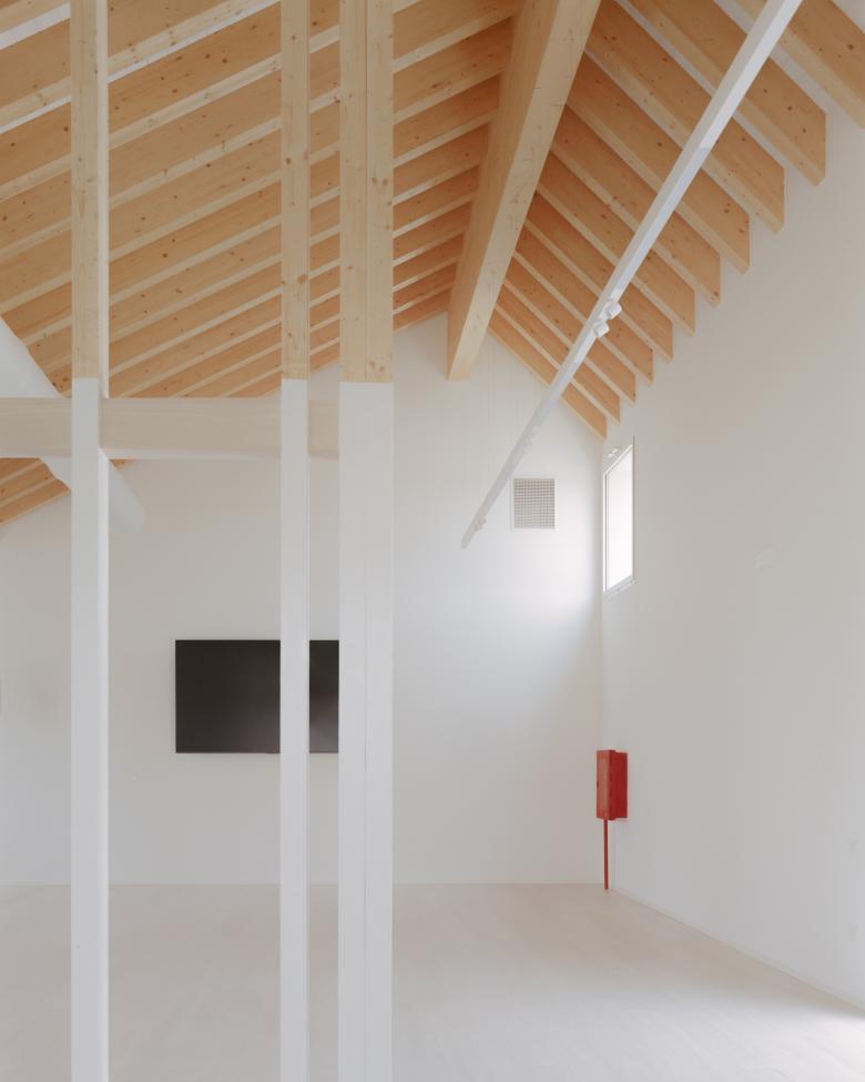 The lower building stands on the opposite side from the road and with its retreat defines the public space, which is further clarified by the presence of the samll garden.