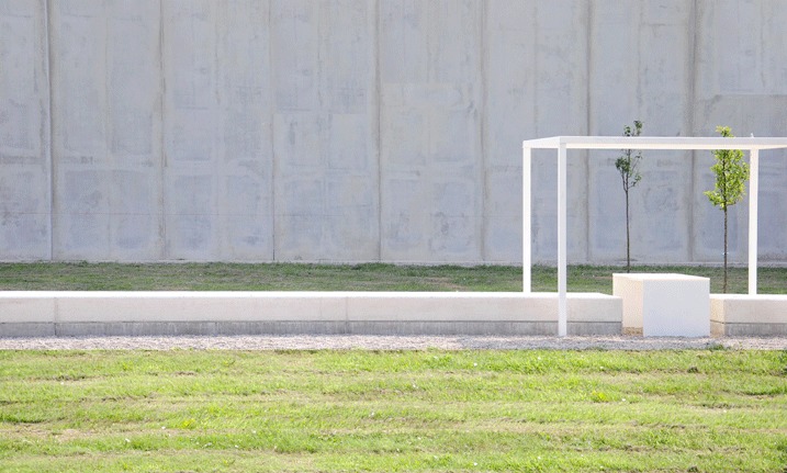 In a suburban area, devoid of rules and hierarchies, a big bench acts as an ordering element able to return a character and identity to an undifferentiated background.