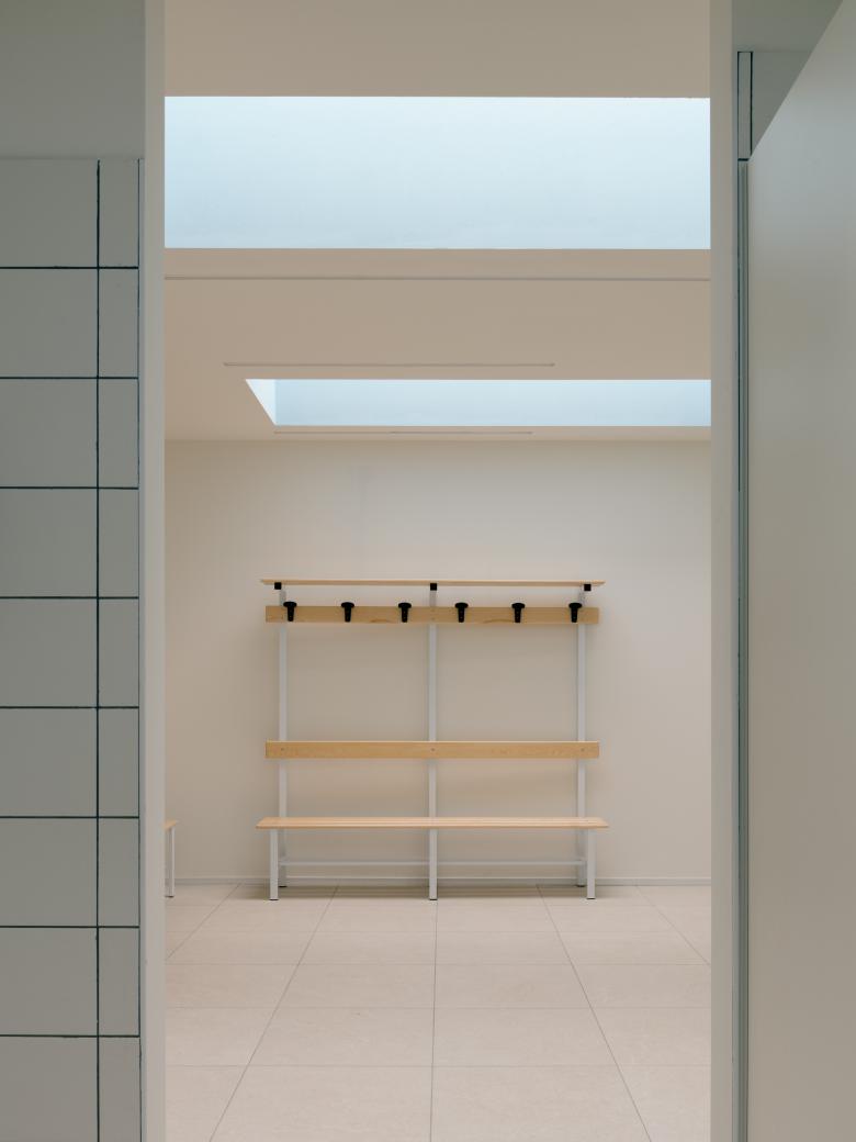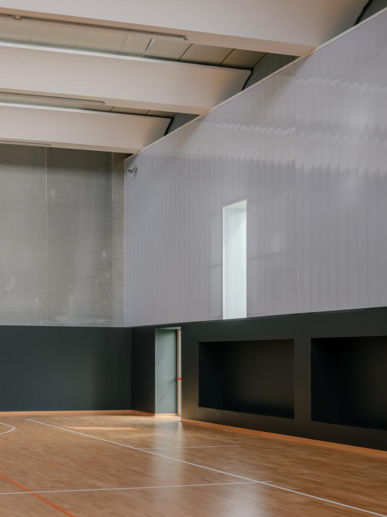 Inside, zenithal light coming from the north ensures uniform illumination of the space, while the openings along the longitudinal sides are shielded with polycarbonate walls that filter out direct sunlight from the playing field.