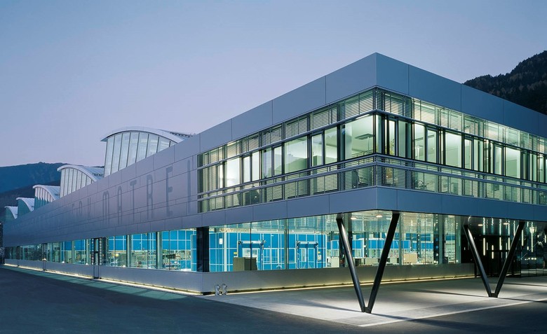 Die Unternehmenskultur des Kunden (eine reine Produktivgenossenschaft) sowie eine Metallverarbeitung auf hohem Niveau standen für die Leitidee des „Fassadenbandes“ Pate. Eine vorgehängte Metallstruktur fasst formal die unterschiedlichen, in ihren Funktionen (Produktion, Lager, Forschung, Verwaltung) klar voneinander unterscheidbaren Baukörper zusammen und spiegelt so den Genossenschaftsgedanken wider. Metall und seine vielfältigen hochwertigen Verarbeitungsmöglichkeiten werden als Imageträger eingesetzt.