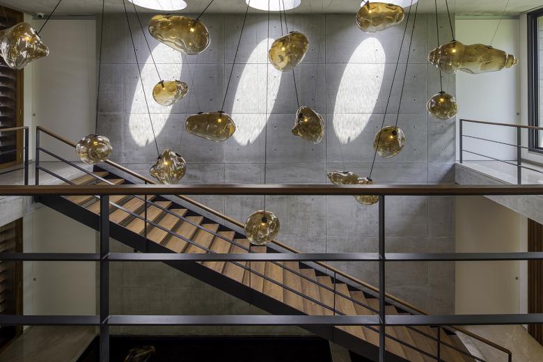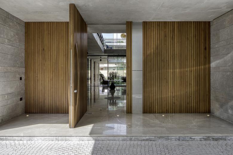 Zusammenleben mit so viel Privatsphäre wie möglich, so lautete das Thema bei der Planung der Residenz für eine indische Großfamilie in Ahmedabad. Um trotz hoher Nachbarbebauung einen intimen Garten zu schaffen, umfassen die Gebäude einen Innenhof. Daran schließen sich nahtlos die Wohnräume der Eltern und Großeltern an, deren Fassaden sich großflächig öffnen lassen. Von außen präsentiert sich das Gebäude geradlinig, mit beweglichen, raumhohen Verschattungsmöglichkeiten. Für alle im Haus lebenden Parteien gibt es eigene Eingänge.
