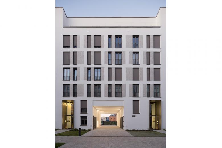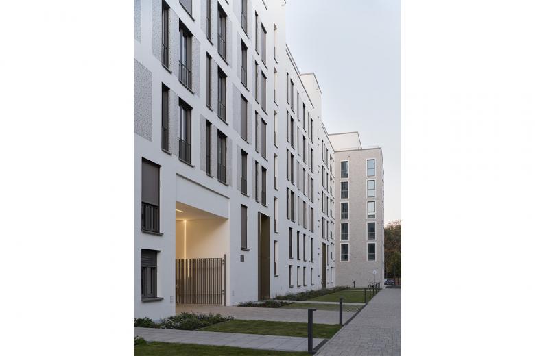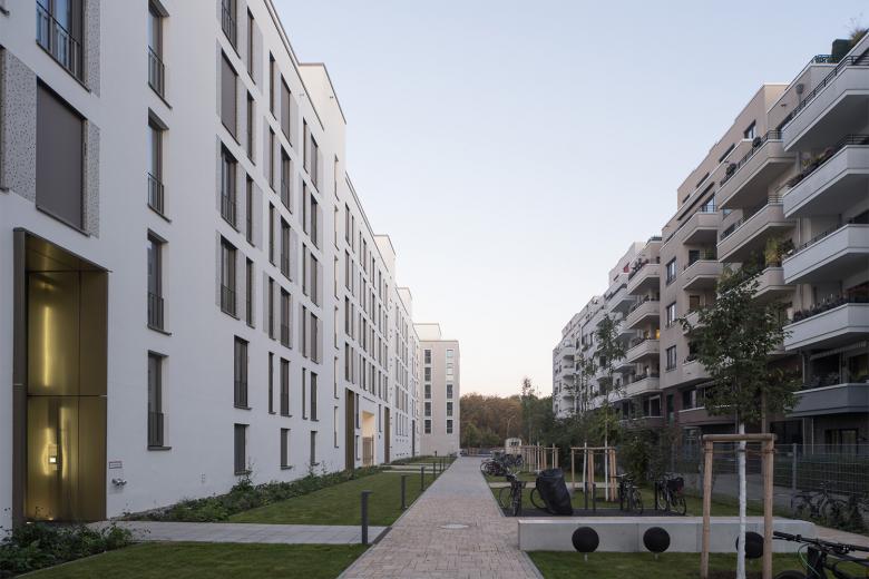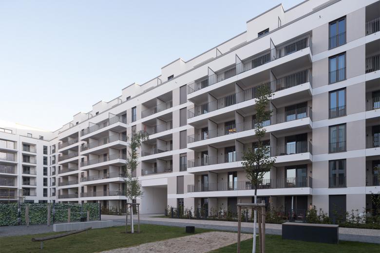 Ein imposantes Wohnungsbauprojekt mit 400 Wohnungen entsteht auf einem alten Brauereigelände am Berliner Volkspark Friedrichshain. Vier Architekturbüros entwickeln das Ensemble mit unterschiedlicher Handschrift und finden dabei eine identitätsstiftende Gesamtsprache, indem sie die Berliner Stadtstruktur wiederherstellen. BFA planten gut 120 lichte Wohnungen in zwei Gebäuden mit jeweils differenziert gestalteten Fassaden. Sowohl Sozial- als auch Eigentumswohnungen finden in der durchmischten Bebauung Platz.