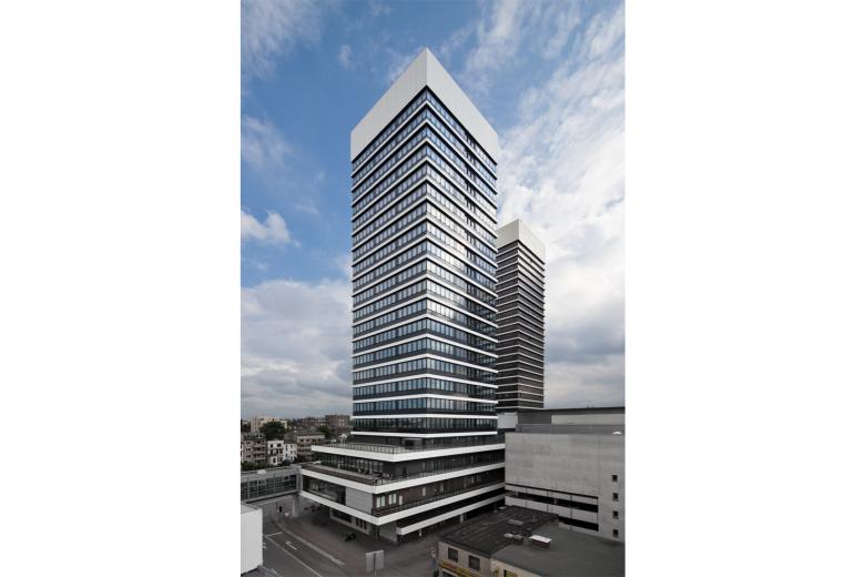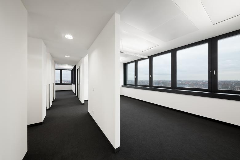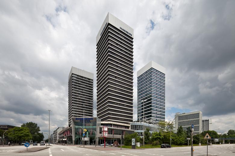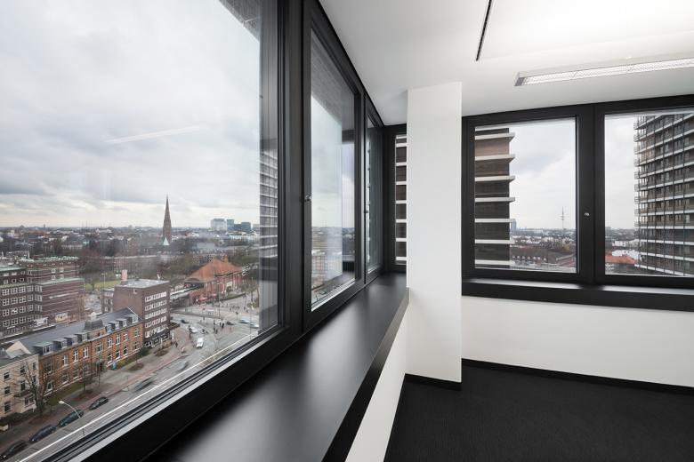 Die Mundsburg Towers sind eine feste Größe im ansonsten eher flachen Hamburg. Das denkmalgeschützte Ensemble besteht aus einem Wohn- und einem Büroturm. BFA wurde beauftragt, den Büroturm auf den Stand der Zeit zu bringen. Die technische und energetische Ausstattung wurde komplett modernisiert und sogar von der Deutschen Gesellschaft für Nachhaltiges Bauen (DGNB) mit Silber ausgezeichnet. Die flexibel aufteilbaren Büroflächen sind in schlichtem schwarz-weiß gehalten, die Bewegungsflächen wurden mit holzigen, warmen Akzenten ergänzt.