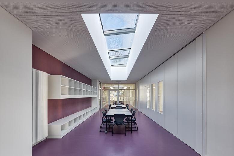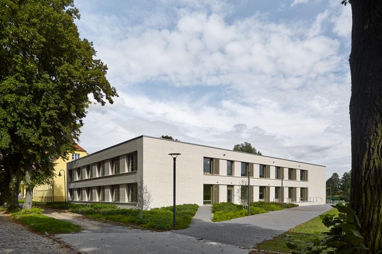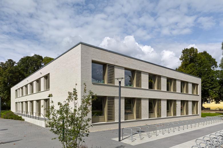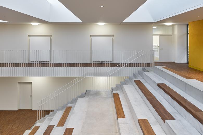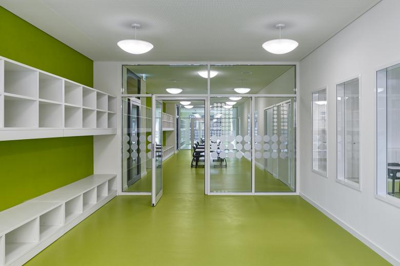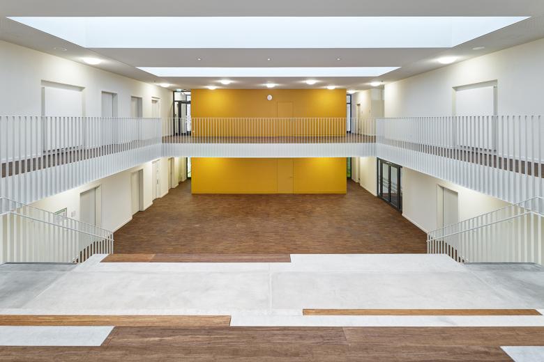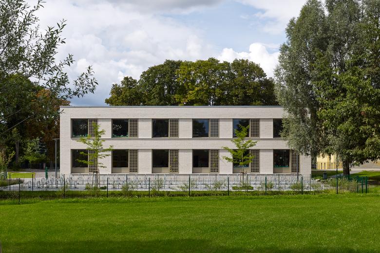 Bei laufendem Schulbetrieb erweiterten BFA die Grundschule Zepernick um einen zweigeschossigen Bau mit moderner, zurückhaltender Ziegelfassade. Dieser Ergänzungsbau steht als eigenständiger Baukörper etwas abseits der bereits bestehenden Gebäude; der in den Kubus eingeschnittene Eingangsbereich öffnet sich jedoch einladend zum Schulcampus. Die 15 Unterrichtsräume, welche farblich in vier Lerncluster aufgeteilt sind, wurden mit einem hohen Maß an Flexibilität gestaltet. Die Cluster gruppieren sich um eine zentrale Spiel-, Bewegungs- und Aufführungshalle. Die davon abführende Freitreppe ist das Kernstück des Gebäudes und kann auch als Zuschauerrang genutzt werden. Sie verbindet die multifunktionale Halle im Erdgeschoss mit einer umlaufenden Galerie im Obergeschoss und betont den offenen Charakter des Gebäudes.