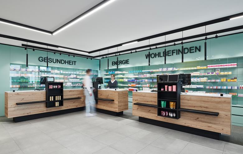 Die Apotheke wirkt nach dem Umbau deutlich größer, zudem wurde auf eine barrierefreie Umsetzung geachtet. Es entstand ein in sich stimmiges Gesamtbild, das ebenso modern wie zugewandt erscheint.