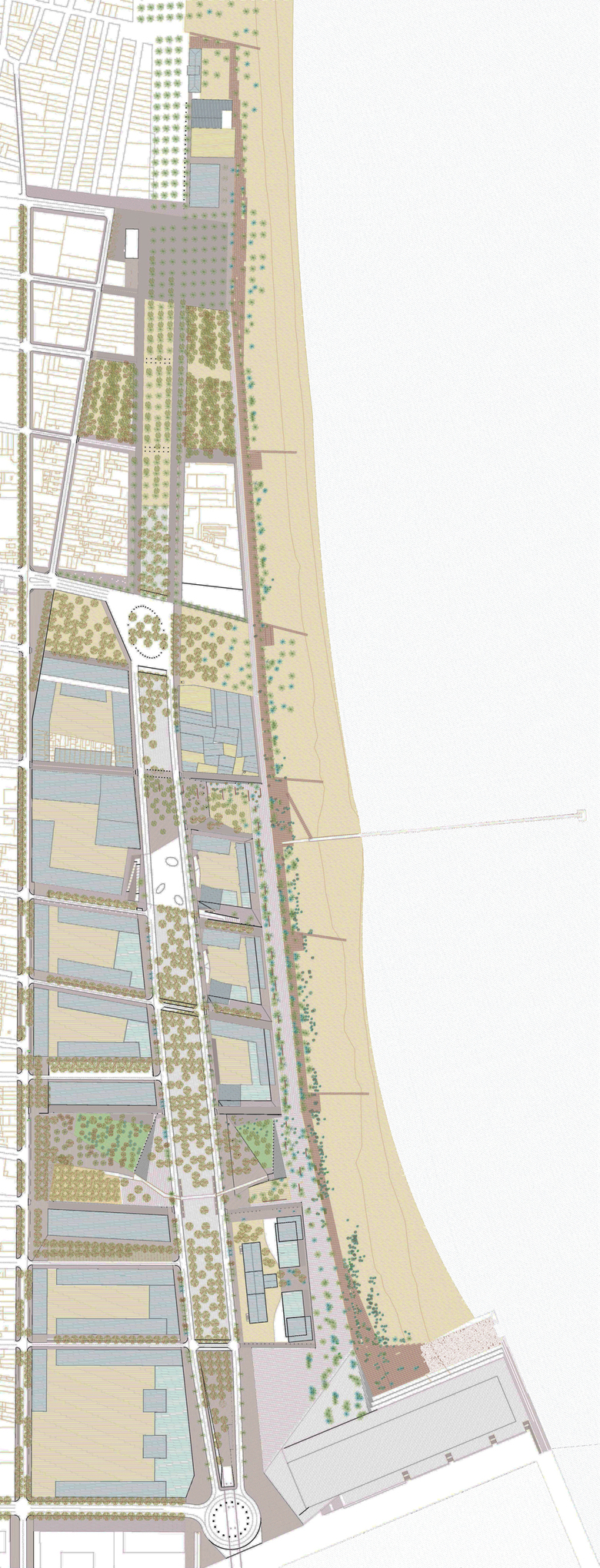 An accurate topographical work closes the perspective of the beach against the new coast, creates squares that allow the relationship between both sides of the railway in Eduard Maristany old bridge and the access sequence of the city to the sea in Martí i Pujol.