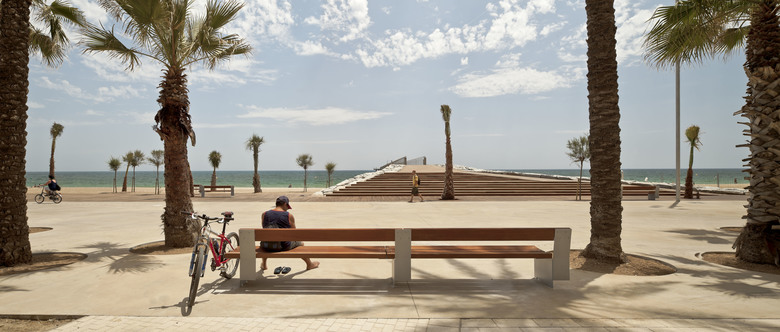 The new Badalona promenade is designed on the scale of the urban esplanade built on the industrial past of the city, establishing a dialogue with the recovered natural landscape.