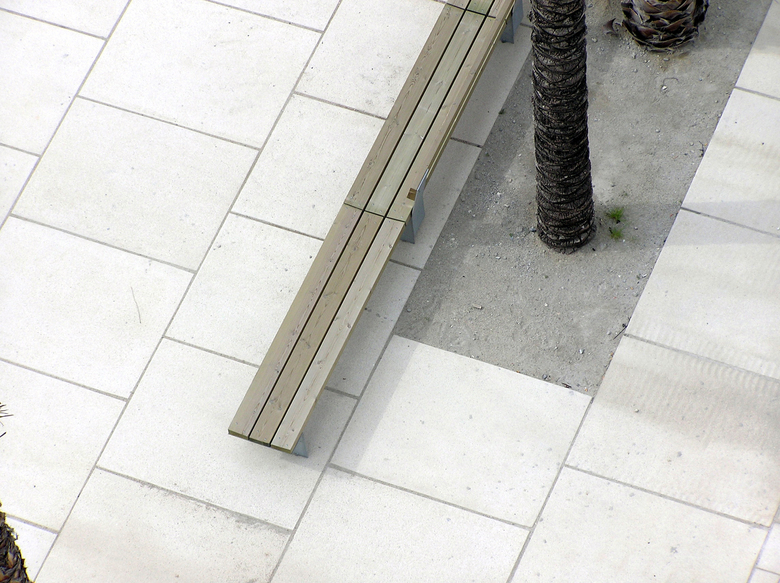 The wooden and concrete parallel walkways resolve the difficulties of land ownerships (limits of the MTZ, Maritime Terrestrial Zone) linked to the distribution of vegetation of five different species of palms trees that, associated to a tamarisk plantation all along the entire way, give the promenade a unique character.