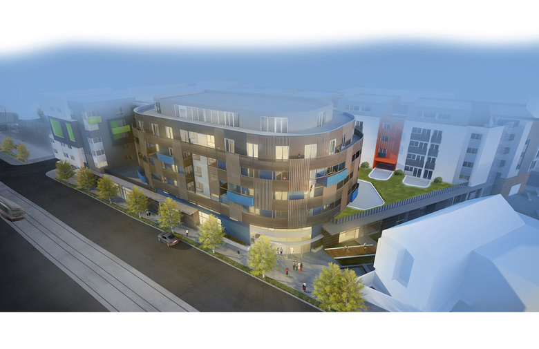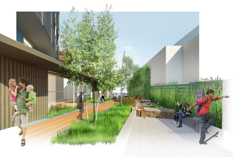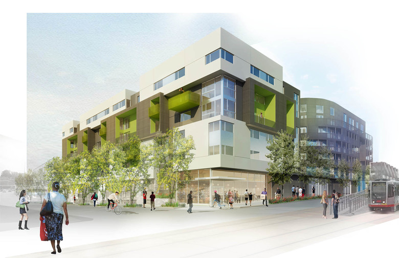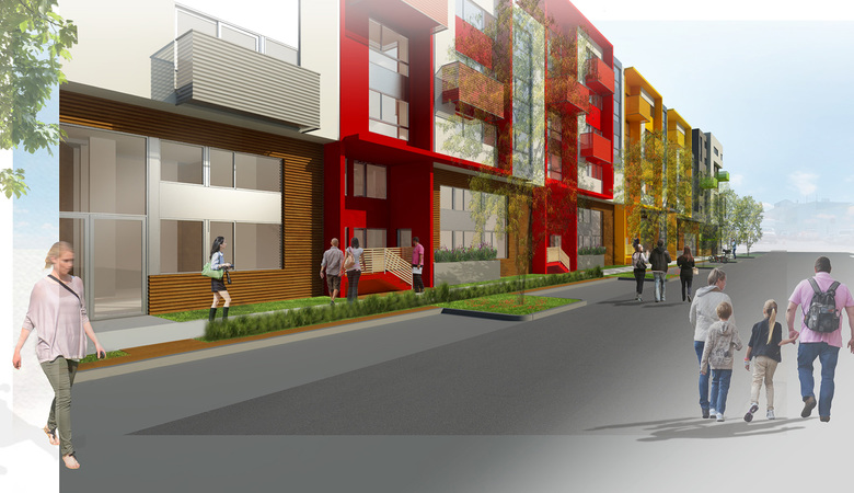 Located at the south-eastern most corner of the Dogpatch Historic District, the 1201 Tennessee project bridges the gap between small scale residential historic buildings to the north and large warehouse scaled buildings to the south and west. To address these two building types, 1201 Tennessee is first articulated as three separate but related buildings, each aiming to respectfully represent the significant elements of Dogpatch history: American industry, and housing for its workers. The round-ended building along 3rd street, emblematic of the silo, employs industrial shape and materialily through the use of faceted perforated metal panels. Turning the corner to the 23rd street building, the metal panel material turns on its end as a reinterpretation of the bay-window. The Tennessee street building further reduces its scale as it approaches its more residential neighbors by stepping down, stepping back, and softening the overall material palette. Further, the overall site-strategy allows for greater than required mass reductions along a generous mid-block alley, which buffers the residential neighborhood and shortens the overall block length.