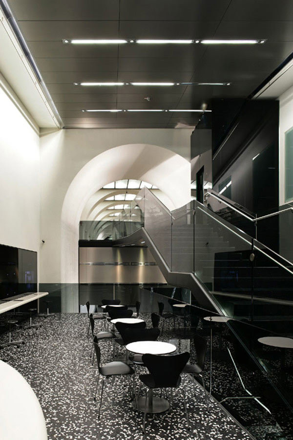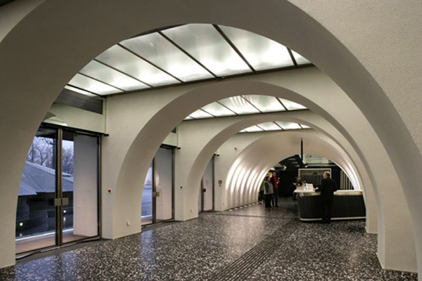 Zum Informationsaustausch wurden ohne Vorkenntnis zu bedienende Mediastationen installiert. Das von „Bartenbach Lichtlabor“ entwickelte Tageslichtkonzept mit fließenden Übergängen schafft eine besucherfreundliche Atmosphäre.