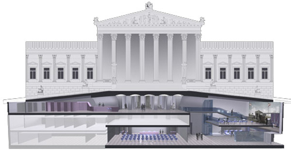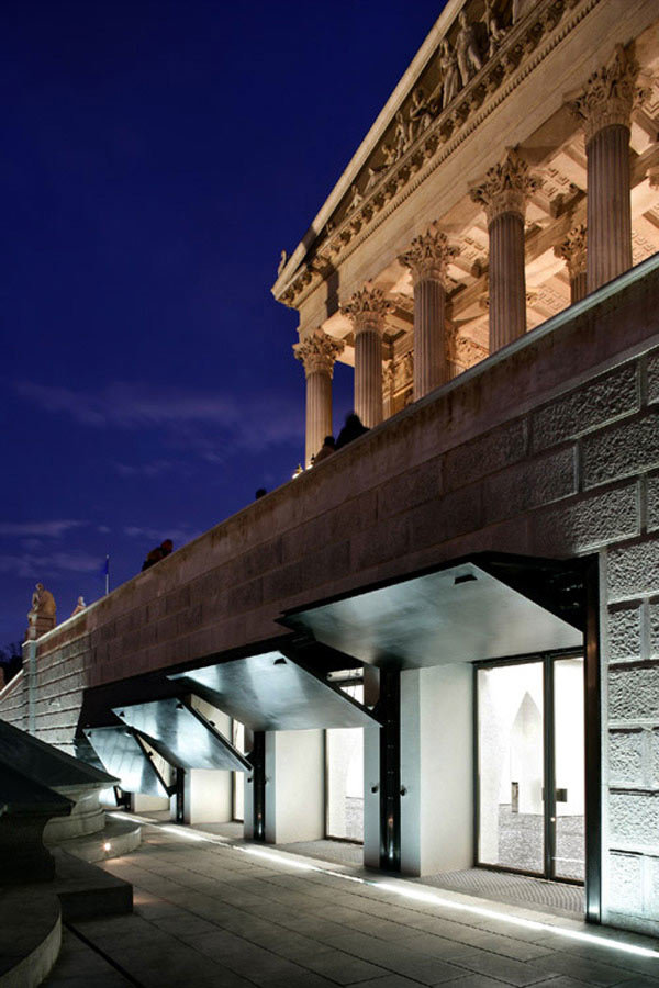 Bei der Neugestaltung des zentralen Eingangsbereichs des Österreichischen Parlaments musste besondere Rücksicht auf das historische Gebäude genommen werden.
