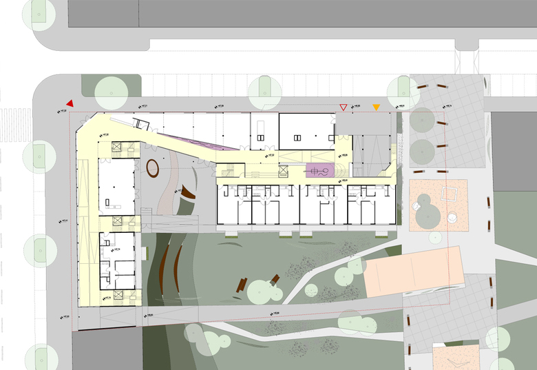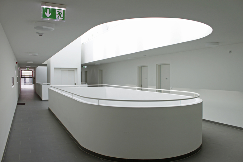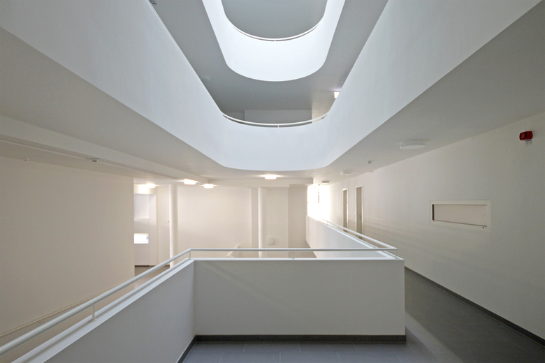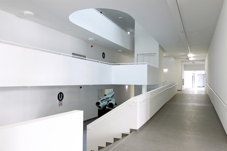 Eine Aula ist zentrale Achse und Identifikation stiftendes Element. Differenzierte Räume und überraschende Blickbeziehungen bieten Platz für kreative und künstlerische Interventionen.