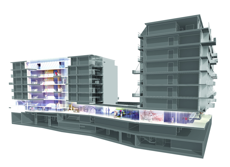 Die Grundrisse und Raumanordnungen sind weitgehend nutzungsneutral gehalten. Flexibel eingehängte Balkone, die die Loggien erweitern, sorgen für individuelle Freiräume.