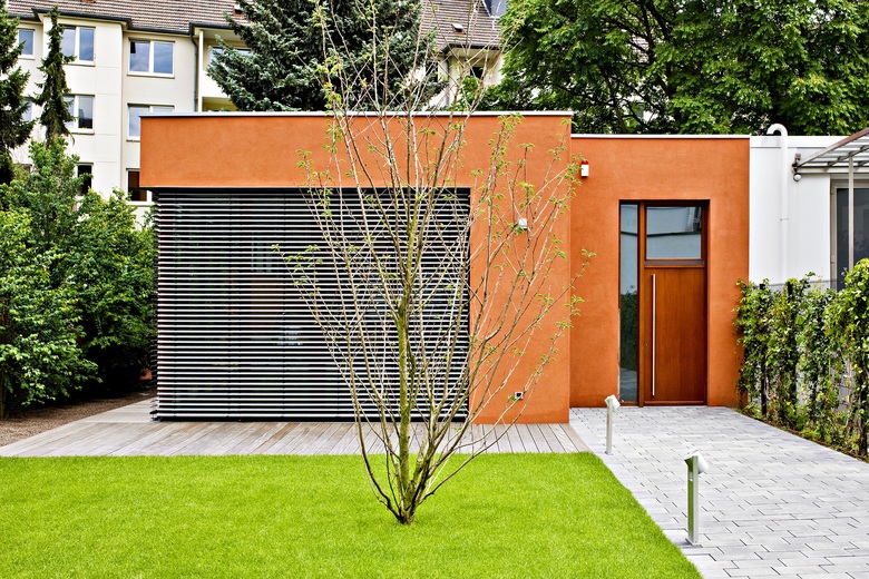 Das Haus besitzt zudem eine sich über die gesamte Grundstückstiefe erstreckende Tiefgarage, die über einen Lichthof zudem Frischluft und natürliches Tageslicht erhält. Besonderheit hierbei ist, dass am hinteren Ende des Baugrundstücks noch Platz für ein Einfamilienhaus gefunden worden ist. Das gesamte Gebäudeensemble wird über die Fassadenausbildung, bestehend aus Geschoss hohen Holzzargenfenstern und einem rostrotem Putz, zu einer Einheit verbunden.