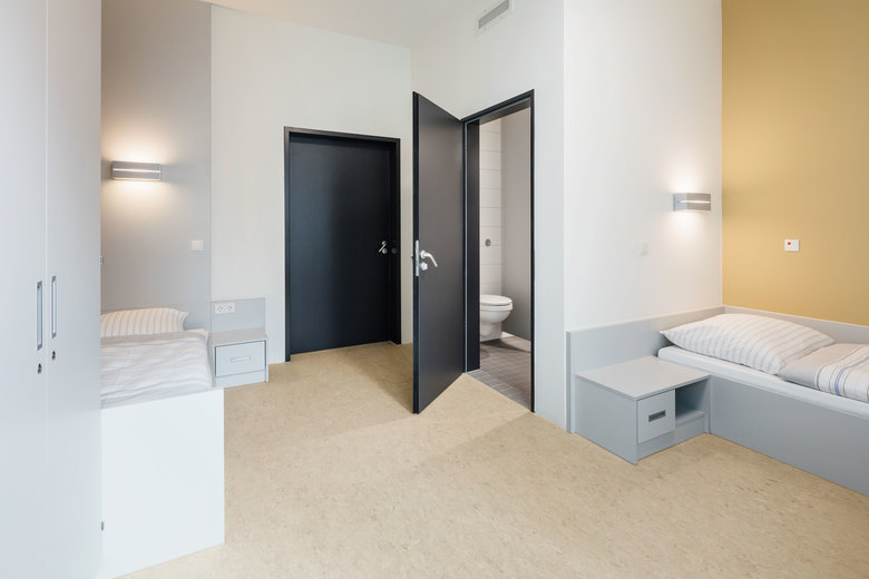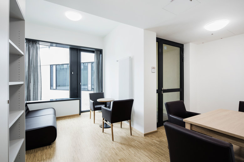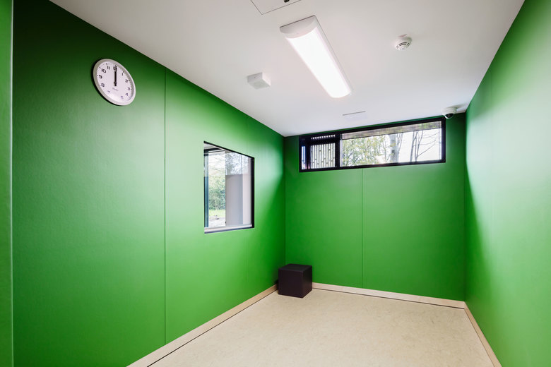 GSP hat ein Gebäude entwickelt, das trotz der Einhaltung höchster Sicherheitsstandards eine Aufenthaltsqualität bietet, die die therapeutische und pädagogische Behandlung maximal unterstützt. So sind beispielsweise die großzügigen und zum Innenhof ausgerichteten Fenster der Patientenzimmer mit einem Ausbruchs- und Durchsteckschutz ausgerüstet, der durch seine Gestaltung nicht an eine klassische Vergitterung erinnert. Die Zimmer sind jugendgerecht ausgestattet und vielfältige Aufenthaltsbereiche bieten Raum für Sozialkontakte.