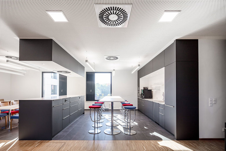 Die Erschließung und Zugänglichkeit der Büroflächen erfolgt über das Foyer. Die öffentlichen Gebäuderbereiche sind so angeordnet, dass Besucher nicht durch die Büroflächen geführt werden müssen. Die Büroflächen sind flexibel gestaltet und können an die Bedürfnisse der Nutzer angepasst werden. Innerhalb der Büroflächen sind Besprechungsräume, Bereiche für die informelle Kommunikation, Teeküchen und Toiletten angeordnet.