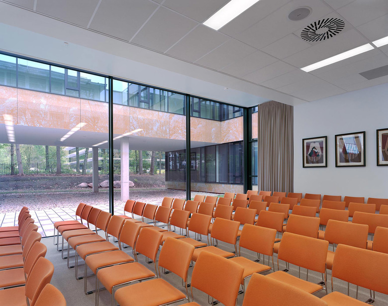 An der Nordfassade wurde das Volumen in einen aufgeständerten Baukörper mit zwei Geschossen aufgelöst. Durch die Aufständerung bietet sich vom Innenhof ein attraktiver Ausblick in umgebende Natur und auf den unmittelbar angrenzenden Neubau des „Grotiusgebouw“ der Universität.