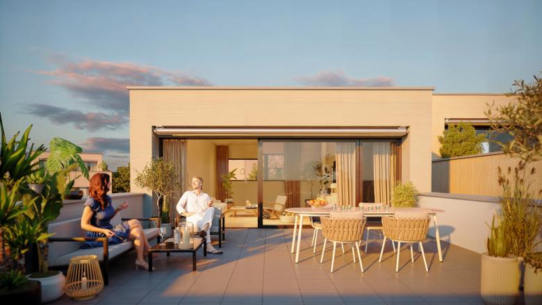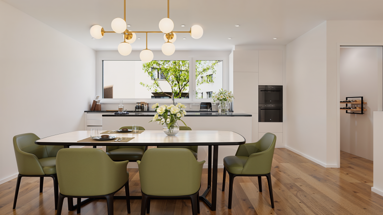 Die Einfamilienhäuser sind in zwei Typen mit je individuellem Wohnangebot gegliedert – wobei alle Häuser über eine grosszügige Dachterrasse im Attikageschoss, einen Garten im Erdgeschoss und eine eigene Doppelgarage verfügen. Je nach Haustyp liegen die Wohnräume entweder auf dem Erdgeschoss mit direkter Anbindung zu Sitzplatz und Garten oder aber die Wohnräume sind im Attikageschoss angeordnet und öffnen sich hin zur Dachterrasse mit ihrem spektakulären Weitblick.