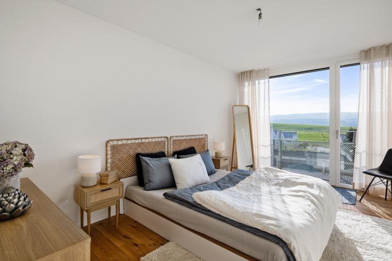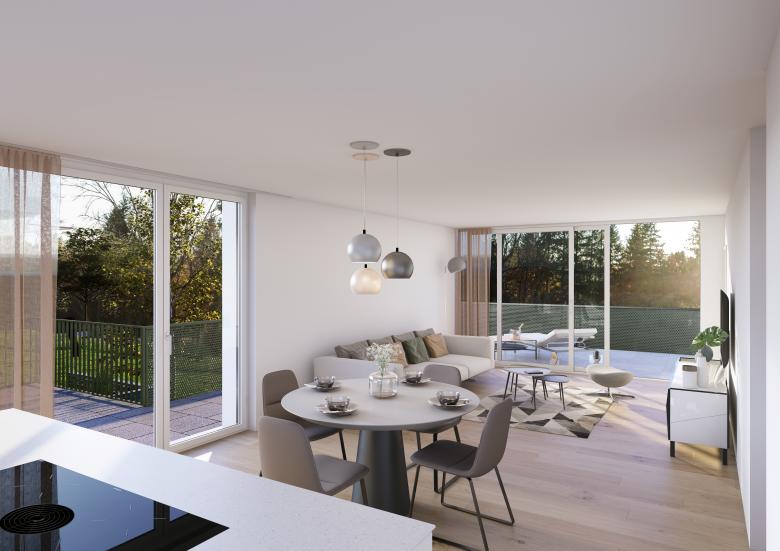 Die Eigentumswohnungen verfügen über grosszügige Schlafzimmer sowie wohlproportionierte, offene Wohn-und Essbereiche. Die angrenzenden Balkone bzw. Terrassen sorgen für viel Licht im Innern und zusätzlichen Raum zum Geniessen und Verweilen im Freien. Die Wohnungen mit Erdgeschossbezug verfügen über grosse Gartensitzplätze.
