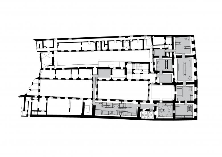 Den Rahmen dafür bildet die in den 90iger Jahren in die historischen Räumlichkeiten des Palais Herberstein eingeschriebene White-Box - eine Folge von hermetisch geschlossenen hölzernen Raumzellen als möglichst neutrale Ausstellungsflächen.