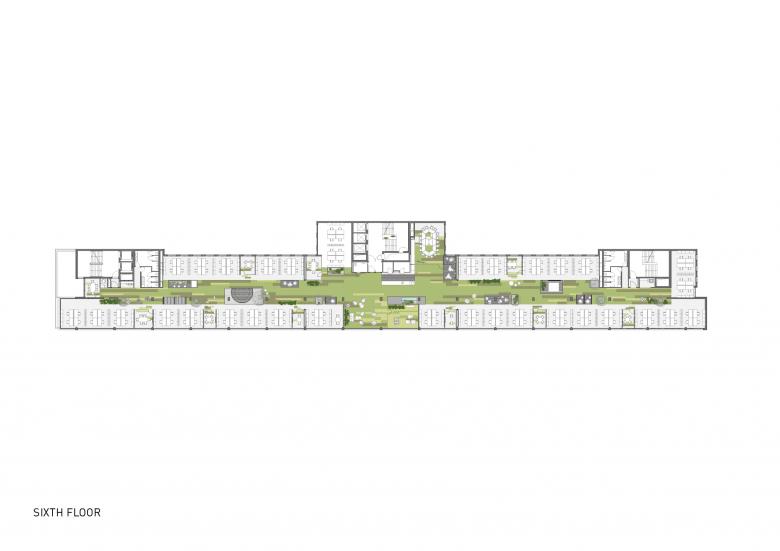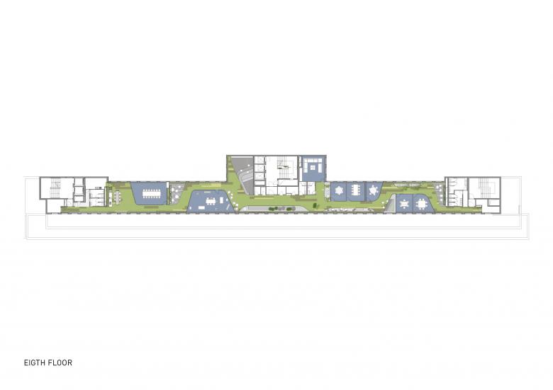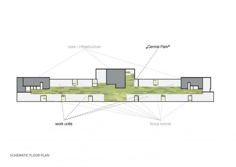 Inspiration für das räumliche Konzept ist der New Yorker Central Park mit der angrenzenden Upper East und West Side. Der Park, eine Kommunikations-, Kollaborations- und Erholungszone mit mäanderartigem Raumfluss bietet eine Vielzahl an Funktionen – Lounges, Küchenzonen, Kaffeebars, Besprechungs- und Fokusräume stellen nur einen Bruchteil der Angebote dar.