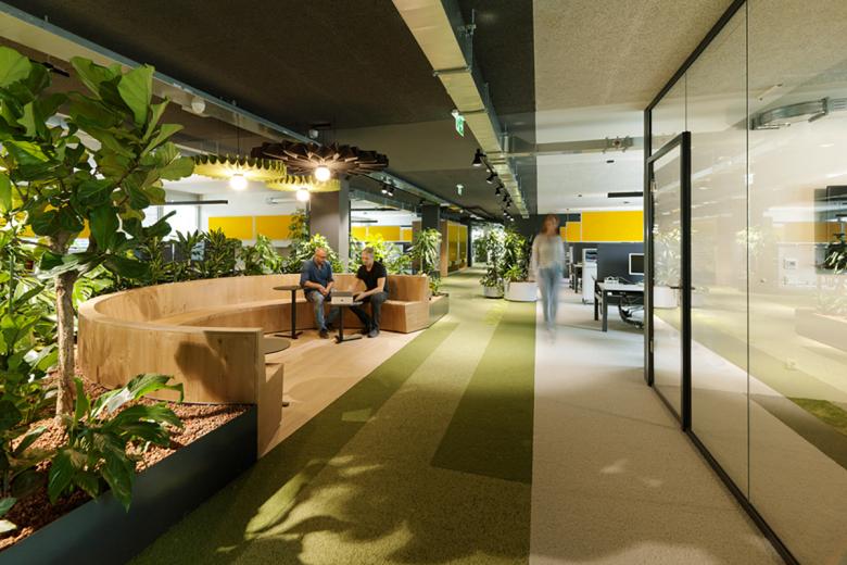 Das Design des SAP Büros in Wien ist ein Schritt in Richtung eines sowohl physisch als auch psychisch gesünderen Arbeitsumfelds, da Dichte und Struktur durch die Analyse und Integration von biophilen Strategien aufgelockert werden.