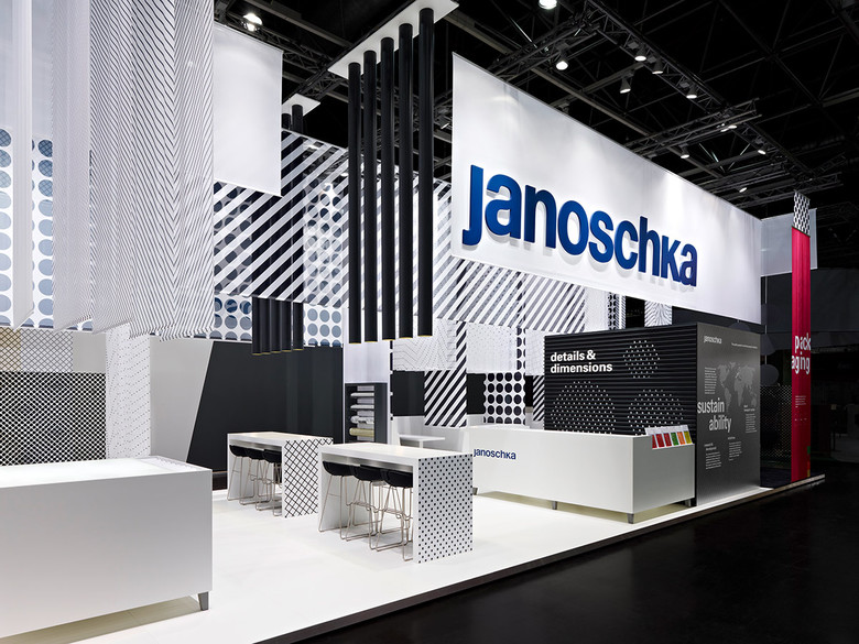 Die Messe-Leitidee „details & dimensions“ zeigt auf, wie die Mitarbeiter und Herstellungstechniken von Janoschka „Maßstäbe setzen“ und sich im Spannungsfeld von Präzision und Qualitätsanspruch im kleinsten Detail und der Koordination und Führung eines weltweit tätigen Unternehmens bewegen. Sonderexponate und Kommunikationsflächen vermitteln die teils abstrakten Abläufe und Services für die Standbesucher lebendig und schnell verständlich. Die Standgestaltung spielt bewusst mit extremen Maßstabssprüngen aus dem Arbeitsalltag von Druckformherstellung und Reproduktion auf grafischer und kommunikativer Ebene und erzielt so ein starkes einprägsames Gesamterlebnis für die Messebesucher.