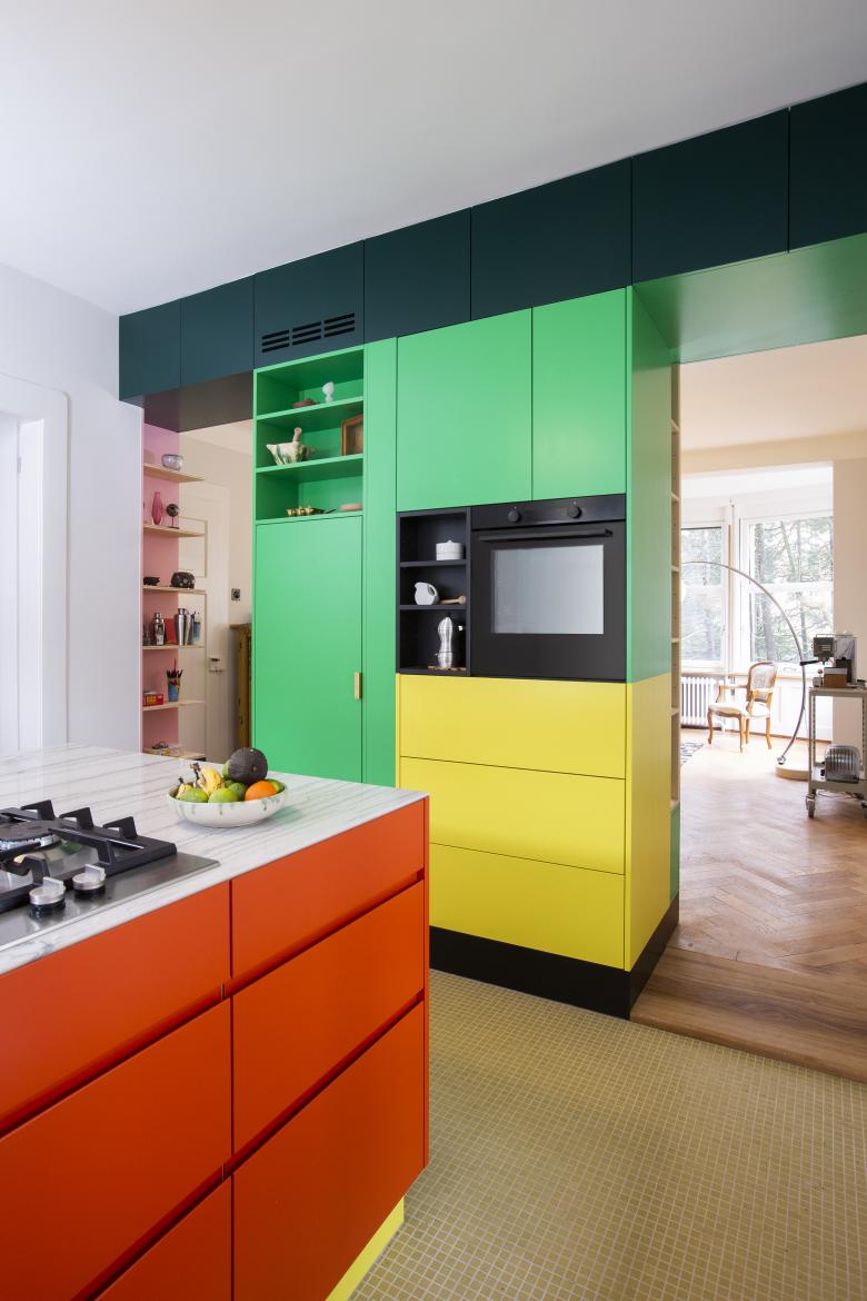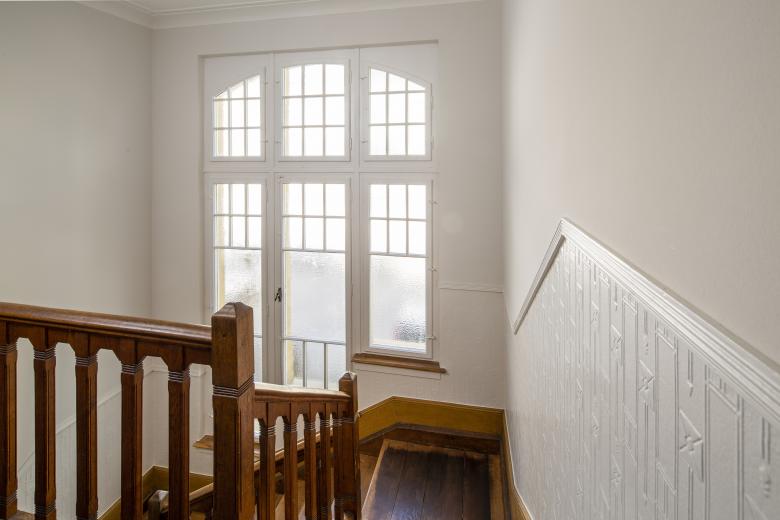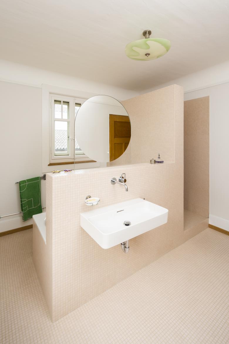 Der Umbau dieses Jugendstilhaus von 1910 wurde im engen Zusammenarbeit mit der Denkmalpflege des Kantons Bern ausgeführt. Alle Elemente welche repariert werden konnten, wurden erhalten. Im Erdgeschoss wurde eine neue Küche eingebaut. Ein Möbel mit Regal und Schubladen verbindet neu Wohnzimmer und Küchenbereich. Im ersten Obergeschoss, wurde eine neues Badezimmer in einer der Zimmer eingebaut. Die Fassade ist noch im originalen Zustand.