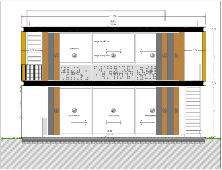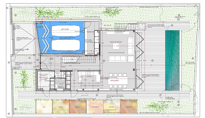 House clearly divided in two areas, a ground floor connecting with all the exterior, and an upper level that searches for a great deal of privacy from the neighbours. The house follows the main entrance axis as an excuse to relate to the exterior. Lateral facades happen to be more eclectic and neutral. Trying all time to disallow the others to know what’s going on inside. Lower program is dedicated to day related activities, leaving the upper level to bedrooms and a common open–studio space. The roof is proposed as an open and active roof, for the users to enjoy the Mediterranean climate.