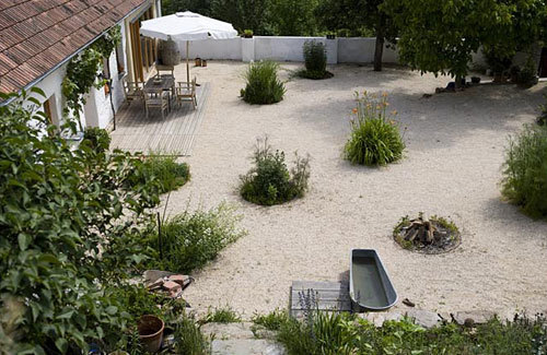 An der Grenze Weinviertel zum Waldviertel in einer vielfältigen Landschaft wurde der Freiraum zwischen den beiden Trakten eines ehemaligen Winzerhofes in Schiltern neu gestaltet. Im Gegensatz zur kleinteiligen Landschaft sollte im Innenhof eine großzügige klare, geordnete, helle befestigte Fläche entstehen, die tauglich für die Alltagsnutzung ist und Verbindung zwischen den beiden Hoftrakten herstellt. Die Idee war aufgrund vielfältiger Nutzungsanforderungen kleine Gartenparzellen „PLOTS“ anzulegen. Über den Hof wurde ein Raster gelegt und mit den Wegführungen, Zufahrten überlagert. Jeder PLOT ist ein eigener Gartenteil mit spezifischer Bepflanzung oder Funktion: der HOTSPOT als Feuerplatz, der WATERPLOT als Freidusche, KÜCHENPLOT als Kräuterbeet und PFLANZENPLOTS mit verschiedensten Blühakzenten. Sollten sich künftig mal Kinder im Alltag dort aufhalten, so wäre es leicht einen PLOT von der Bepflanzung zu befreien und daraus einen SANDSPIELPLOT anzulegen.