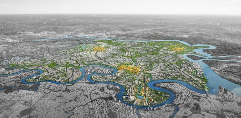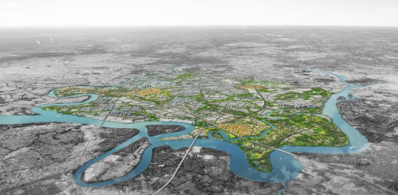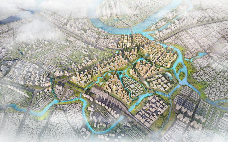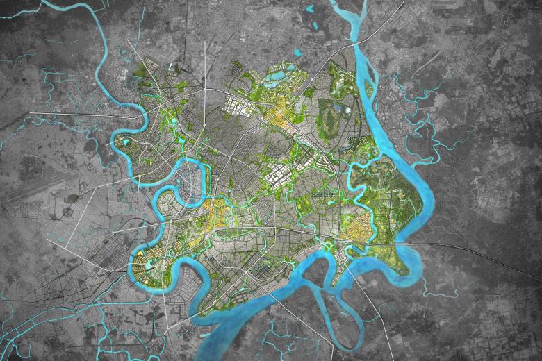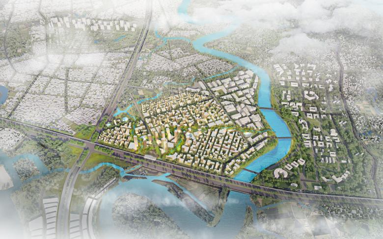 Der Masterplan des HCMC East Innovation District bietet einen soliden Rahmen für die städtische Transformation, der das gebaute und das natürliche Ökosystem nutzt. Der Masterplan wird durch sozioökonomische und nachhaltige Ziele gestützt, die integraler Bestandteil der Raumplanung sind. Auch das öffentliche Verkehrs- und Mobilitätssystem sowie das blaue und grüne Netz der Wasserstraßen bringen Durchlässigkeit und Hierarchie in die bestehende heterogene Urbanisierung. Dieser neue Rahmen steuert die dringend notwendige Bewältigung physischer Herausforderungen wie Barrieren, große Entfernungen und verstreute Urbanisierung, um ein attraktives, lebenswertes städtisches Umfeld zu schaffen.
