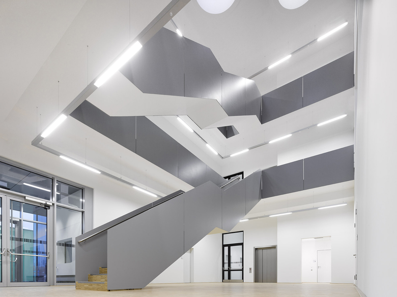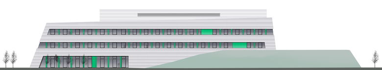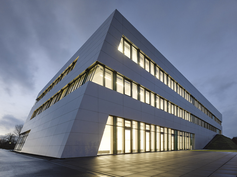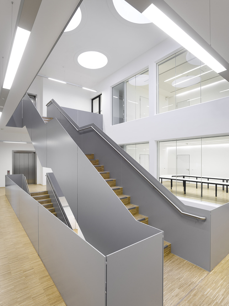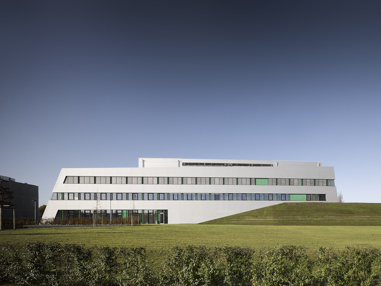 Die Struktur der einzelnen Geschosse des Hauptbaukörpers ist geprägt durch die eindeutige Gliederung zwischen den kompakt sowie streng funktional organisierten Laborlandschaften und den angrenzenden Bürobereichen. Ausgehend von den Seminar- und Besprechungsräumen im Erdgeschoss entwickeln sich die Büroräume im 1. und 2. Obergeschoss um einen offenen Luftraum mit angegliederten Kommunikationszonen sowie entlang der Labore. Die Laborstrukturen sind kompakt und offen gestaltet. Alle Arbeitsbereiche in den Laboren sind auf das Tageslicht ausgerichtet.