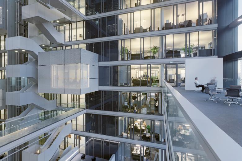 Der Neubau der Deutschen Börse bietet auf ca. 80.000 qm Bruttogeschossfläche Raum für mehr als 2.000 Mitarbeiter des Unternehmens. Ziel war es, ein Identität stiftendes Gebäude zu schaffen, das nicht nur das heterogene städtebauliche Umfeld in Eschborn aufwertet, sondern zugleich die Unternehmenswerte der Deutschen Börse Group, wie Transparenz, Offenheit und Nachhaltigkeit verkörpert.