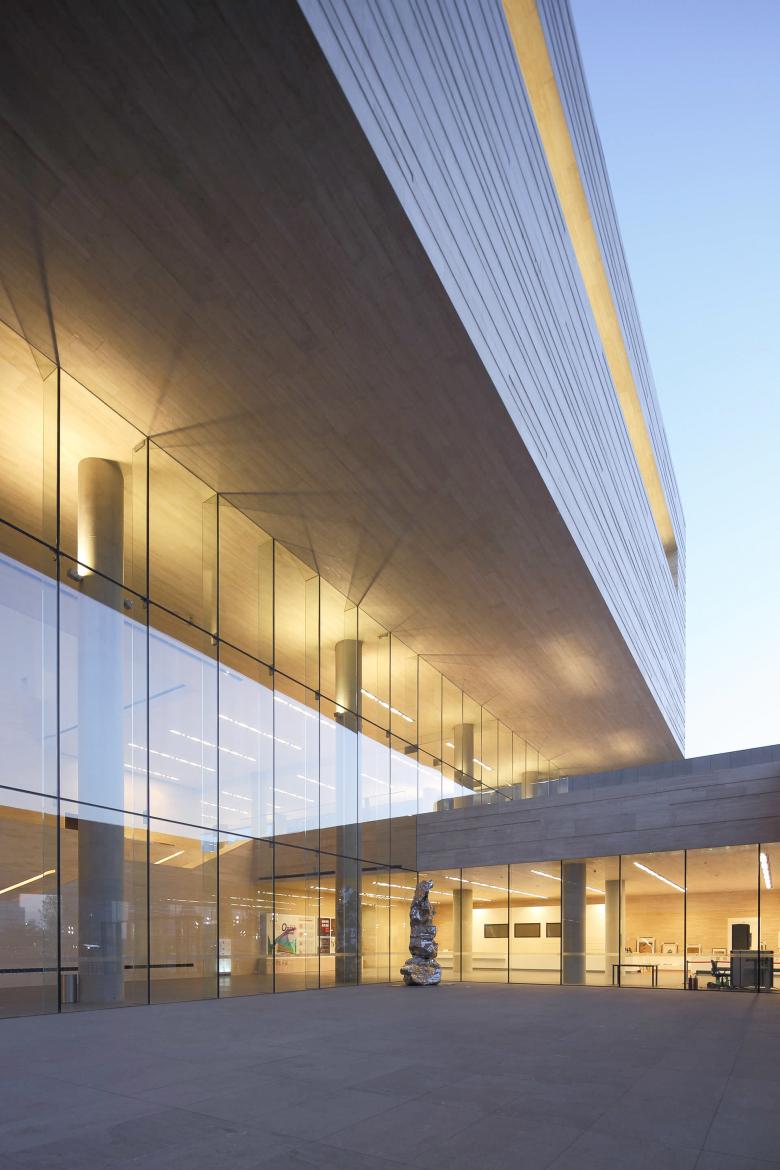 Das Museum erinnert in seinem räumlichen Aufbau an einen monolithischen Steinkubus mit präzisen Einschnitten, Aussparungen und Hohlräumen. Im massiven Teil des Bauwerks sind sämtliche Ausstellungsräume, ein von den Besuchern einsehbarer Raum für Restaurierungen, die Bibliothek und Konferenz- und Besprechungsräume untergebracht. Die kaskadenförmige Abfolge von Treppenaufgängen, die zu den Ausstellungsräumen in den Obergeschossen führen, scheinen aus dem Steinvolumen des Museumsbaus herausgearbeitet zu sein. Dieser Erschließungsbereich wird zusätzlich über Oberlichter belichtet.