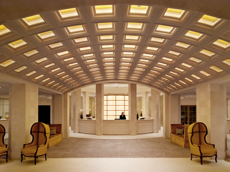 Im Zuge dieser Sanierung wurde die Beleuchtung des wiederaufgebauten Hotels ebenfalls komplett erneuert. Ziel der neuen Lichtgestaltung war es, die räumlichen Hierarchien der Lobby und angrenzende Bereiche im Licht darzustellen und dadurch eine optische Beruhigung und eine klare räumliche Gliederung zu erzeugen die es erlaubte eine großzügige räumliche Gesamtwirkung zu schaffen.