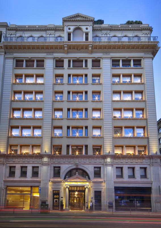 Forty five lamps, one on each window, and a simple programming of control system, from the theatrical technology. It forms a net of pixels that allows to draw and write, and through the rhythm, creates a choreography over the hotel façade.