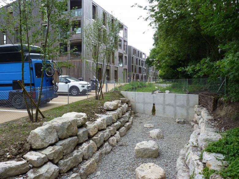 Le paysage : prolongement des cheminements et de la végétation alentour,