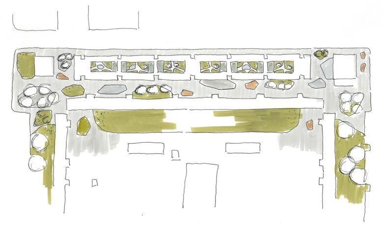 Ein turmartiger Baukörper im Osten des Wettbewerbsgeländes komplettiert die städtebauliche Großform im Geviert Köpenicker-, Heinrich-Heine-, Annen- und Michaelkirchstraße aus den 60-er Jahren. Ein 3-geschossiger, feingliedrig strukturierter Flachbaukörper verlinkt dieses neue Hochhaus mit dem bestehenden Punkthochhaus PH 12 an der Ecke Köpenicker- und Heinrich-Heine-Straße. Eine deutlich sichtbare Fuge im OG3 des neuen Punkthochhauses lässt dieses einerseits deutlich leichter und proportionierter wirken und verbindet andererseits Hochhaus und Flachbau visuell miteinander und schafft so eine Gebäudeeinheit. Durch das Zurückspringen der Sockelzone von Turm und Flachbau entsteht eine lebendige, geschützte, homogen anmutende, straßenbegleitende, öffentliche Zone, welche zum Flanieren und Verweilen einlädt. Die Bereiche zwischen den Neubauten werden landschaftsgärtnerisch gestaltet und mit Grüninseln durchzogen. Es entsteht eine lärmabgewandte, intime, semiprivate Zone, in welcher sich auch die Hauseingänge des neuen Flachbaukörpers finden.