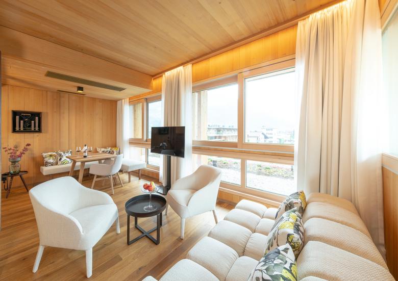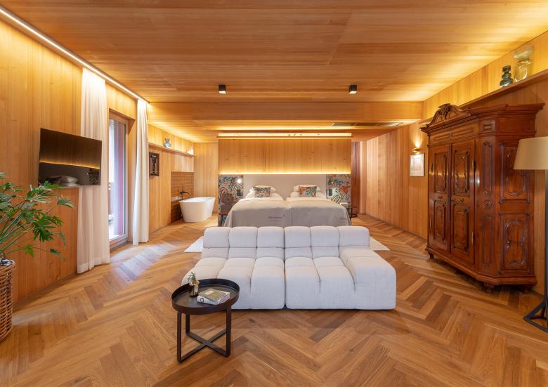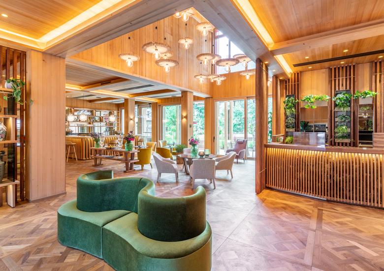 Das architektonische Konzept des Holzhotels stammt aus der Feder des italienischen Stararchitekten Matteo Thun. „Holz ist der mir einzig bekannte Werkstoff mit ästhetischer und technischer Dauerhaftigkeit“, erklärt Thun seine Begeisterung für die Vielseitigkeit des Materials. Neben den 35 Zimmern in sechs Kategorien umfasst das Hotel eine Wellnesslandschaft mit Außenpool, das Restaurant Wilde Kräuterküche sowie die Bar und Patisserie Eden und nicht zuletzt den namensgebenden Garten von rund 2.000 m².