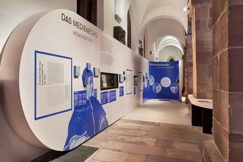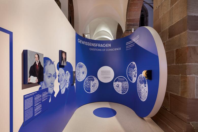 Eine große auf den historischen Ausstellungsraum abgestimmte Medieninszenierung führt gleich zu Beginn in das Weltereignis Wormser Reichstag ein. Dieses wird in vertiefenden Medienstationen genauer beleuchtet. Sowohl anhand einer Einbettung der Exponate in interaktive, thematische Karten, beleuchtete Modelle, als auch anhand von Hands-Ons den persönlichen und politischen Kontext Luthers und seiner Gegenspieler. Ein besonderer Fokus wird über anschauliche Statistikmodelle auf den mittelalterlichen Ort Worms gelegt. Der zweite Teil der Ausstellung bietet neben den Exponaten ebenfalls vertiefende Informationen über Medienstationen sowie veranschaulichenden, assoziativen Modellbau. Eine interaktive „Gewissenswand“ erlaubt es Besucher*innen ihre persönlichen Ansichten und Gewissensentscheidungen geheim unter UV-Licht angefertigter Niederschrift symbolisch zu teilen. Großformatige Wand- und Bodengrafiken mit geografischem Hintergrund und zeitgenössische Portraits bieten vertiefende und ansprechende Hintergrundinformation und beleuchten so die herausragenden Protagonist*innen der Entwicklung des Gewissensbegriffs.