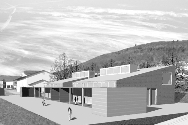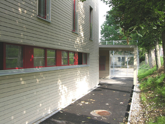 Der neue Kindergarten ist gemäss der übergeordneten Schulraumplanung auf dem bestehenden Hartplatz zwischen der Haargasse und der Turnhalle Zimmerberg erstellt worden. Die Situierung und das Projekt sind so vorgesehen, dass zu einem späteren Zeitpunkt ein zweiter Kindergarten dazugebaut werden könnte.