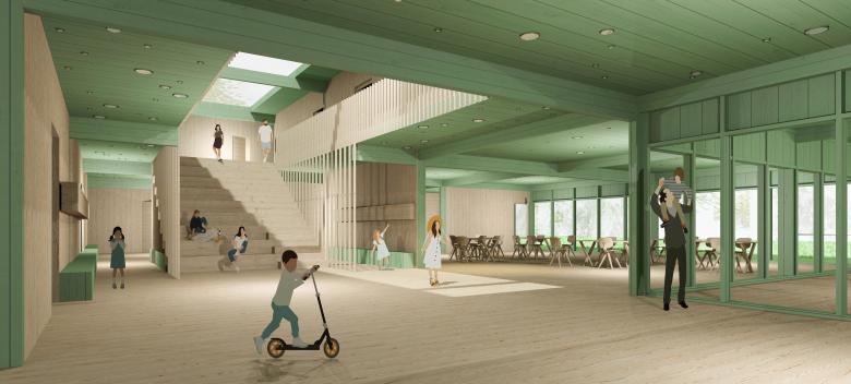 Auszug Jurybeurteilung: „...Der Grundriss des Hortes wird äußerst positiv bewertet. Er ist kompakt und funktional. Die Räume lassen sich flexibel zusammenschalten und erinnern an das Konzept eines Lernhauses. Sie lassen eine hohe Innenraumqualität erwarten. Auch die Festhalle ist gut organisiert, wobei die Ausrichtung und Abkehr vom westlichen Zugang hinterfragt wird. Die gewählte Architektursprache passt aus Sicht des Preisgerichtes nicht in das Ortsbild von Irxleben....."