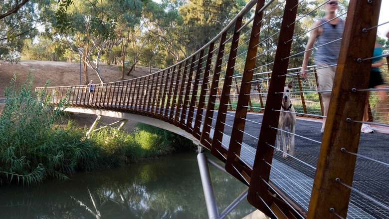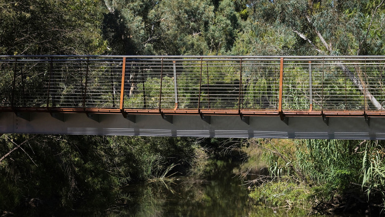 The new River Torrens Bridge provides a crucial connection in the urban and recreational cycle network. By virtue of its location in a natural open space setting, the bridge is both surprising and tempting to its users. The form is an expressive through subtle sculpture that captures the moment of ‘crossing’ and the qualities of the immediate landscape.
