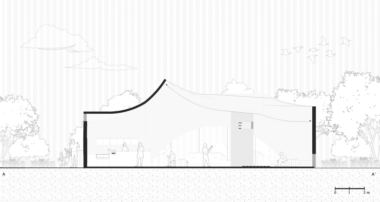 Surrounding the main structure, we have arranged flexible installations and scattered seating in the extended park area to encourage people to wander freely between the streams and greenery, exploring the diversity of the natural landscape. At the same time, leveraging Xianju’s mountains, bamboo forests, and rivers, we will launch diverse activities such as hiking, meditation, nature concerts, and paddleboarding. These initiatives aim to gather a community of "drifters" who share a longing for a water-inspired lifestyle, allowing them to collectively embrace the present moment through fluid experiences and unlock new ways to engage with the land.