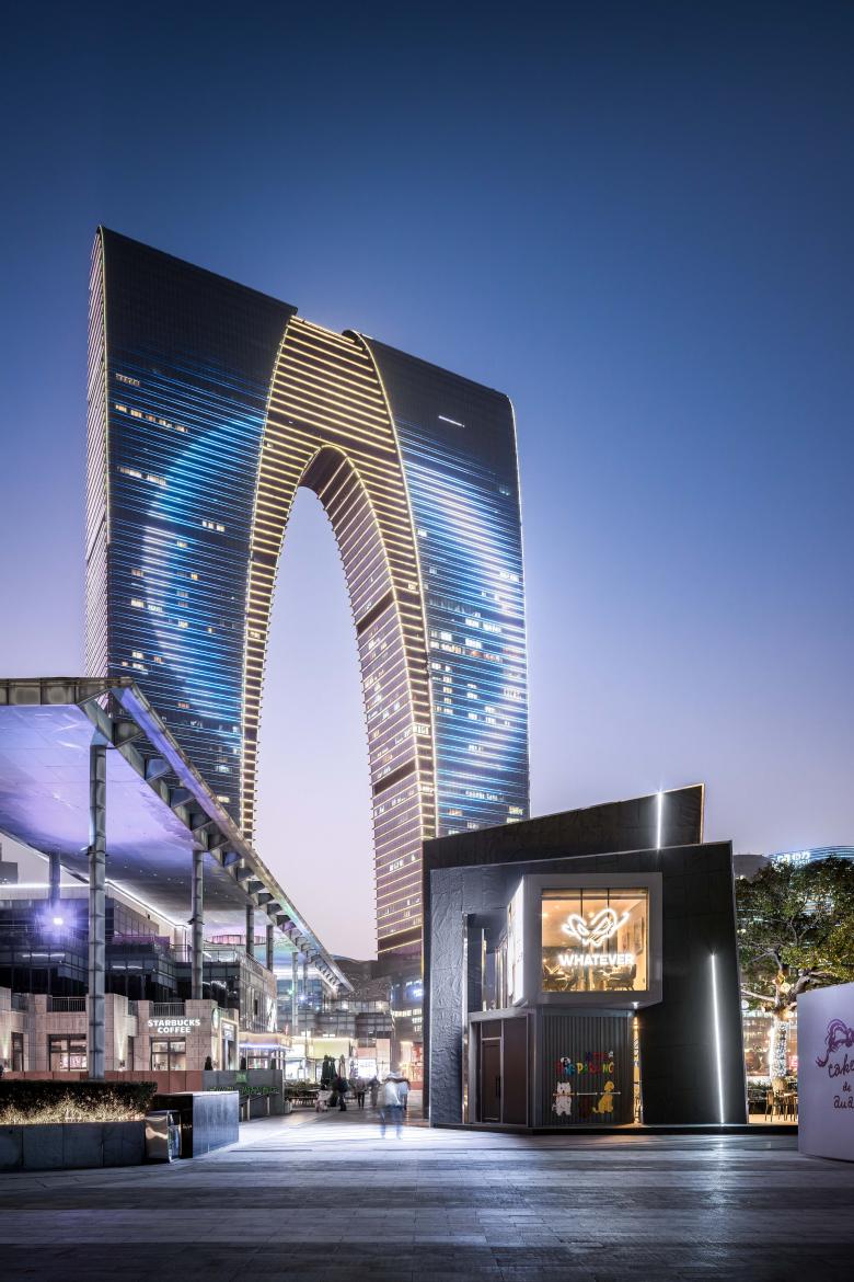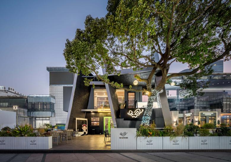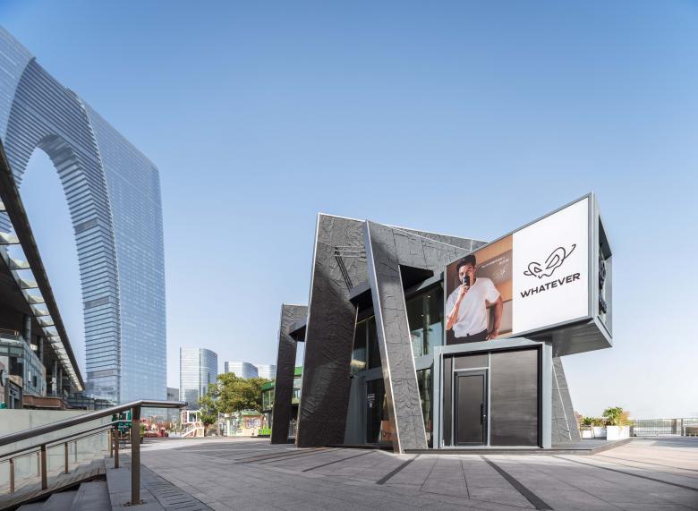 There are always unexpected breathing spaces tucked away in the crevices of a city. In this corner of Lakeside Paradise in Suzhou, the design team adopted the concept of urban cracks and transformed two stacked shipping containers into a dynamic spatial form. This deconstructive architectural design echoes the core ethos of the WHATEVER brand advocated by Daniel Wu—unrestrained, spontaneous yet underpinned by a resilient order.