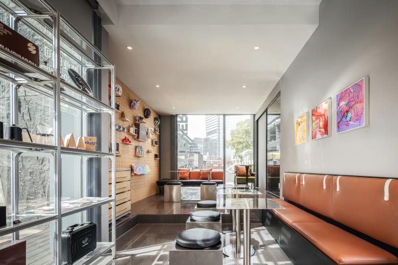 The outdoor seating area features wooden paving as the primary material, creating a seamless transition with the street through a neat paving layout. The design blurs the rigid boundary between the building and the city, softens street hustle with the warm texture of wood, and builds a functional yet relaxed transitional space that caters to users’ needs for temporary stays and social gatherings.