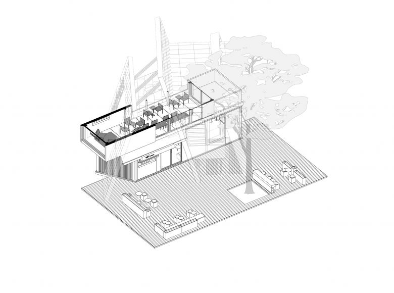 More than a café, a stage sprouting from urban cracks.