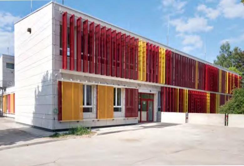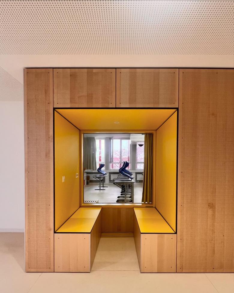 Die Mittelschule Kaufering wurde generalsaniert. Die Schule öffnet sich nach außen . durch Sitznischen mit verglasten Elementen entstehen mehr Möglichkeiten zum Kommunizieren.